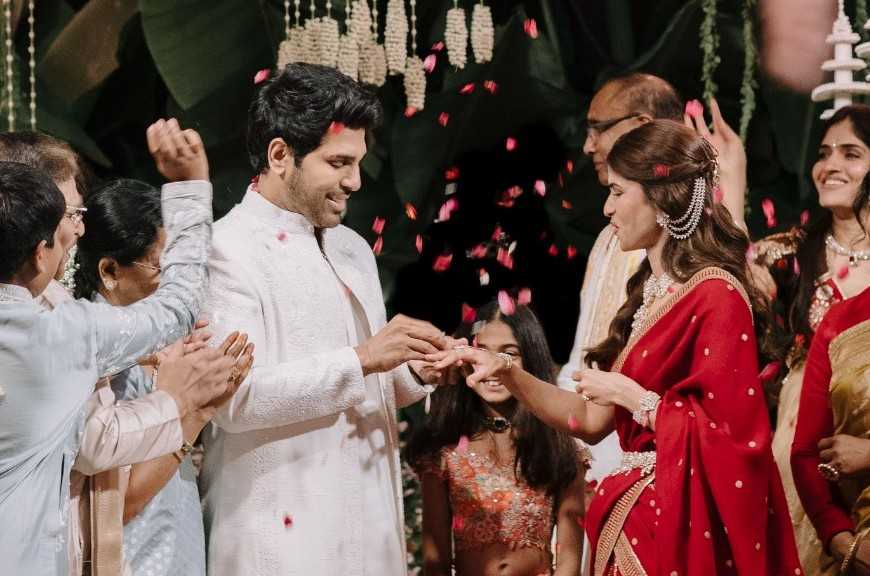 நடிகர் அல்லு சிரிஷுக்கும் அவரது நீண்டநாள் காதலியான நைனிகாவுக்கும் நேற்று ஐதராபாத்தில் பிரமாண்ட நிச்சயதார்த்த விழா நடைபெற்றது. இந்த நிகழ்வில் சிரஞ்சீவி, அல்லு அர்ஜுன், ராம் சரண் மற்றும் குடும்ப உறுப்பினர்கள் உள்பட பலர் கலந்து கொண்டனர். கடந்த சில வருடங்களாக காதலித்து வரும் சிரிஷும் நைனிகாவும், தங்கள் அன்புக்குரியவர்களின் ஆரவாரங்களுக்கு மத்தியில் மோதிரங்களை மாற்றிக் கொண்டனர். நிச்சயதார்த்த புகைப்படங்கள் சமூக ஊடகங்களில் வைரலாகி வருகின்றன. ரசிகர்கள் இவர்களுக்கு வாழ்த்துகளைத் தெரிவித்து வருகின்றனர். திருமண தேதி விரைவில் அறிவிக்கப்படும் என்று எதிர்பார்க்கப்படுகிறது