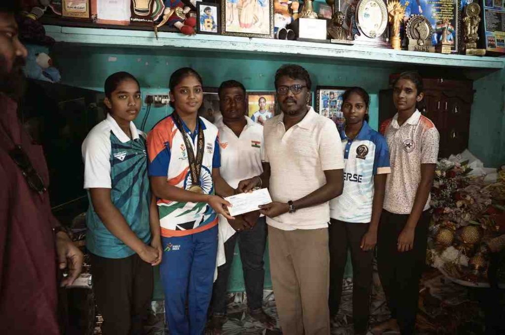 இதனையடுத்து, கார்த்திகாவும் அவரது கபடி அணியினரும் சாதித்த பெருமையையும், கபடி விளையாட்டின் பெருமையையும் கொண்டாடும் நோக்கில் ‘பைசன்’ திரைப்படக் குழுவின் சார்பில், கார்த்திகாவிற்கு ரூ.5 லட்சமும், கண்ணகி நகர் கபடி அணிக்கு ரூ.5 லட்சமும், மொத்தம் ரூ.10 லட்சம் பெறுமான காசோலையை இயக்குநர் மாரி செல்வராஜ் நேரிலாக கார்த்திகாவின் கண்ணகி நகர் இல்லத்திற்கு சென்று வழங்கினார்.