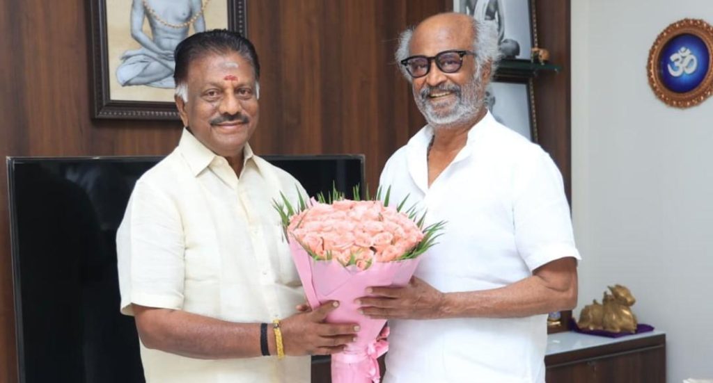 சென்னை போயஸ் கார்டனில் உள்ள நடிகர் ரஜினிகாந்த் இல்லத்துக்கு ஓ பன்னீர் செல்வம் நேரில் சென்று அவருக்கு தீபாவளி வாழ்த்துக்களை கூறி மகிழ்ந்தார். இந்த சந்திப்பின்போது ஓ பன்னீர் செல்வம் உடன் அவரது மகனும், முன்னாள் எம்பியுமான ரவீந்திரநாத் இருந்தார். இந்த சந்திப்பின் போது எடுக்கப்பட்ட புகைப்படங்கள் தற்போது இணையத்தில் வைரலாகி வருகிறது.